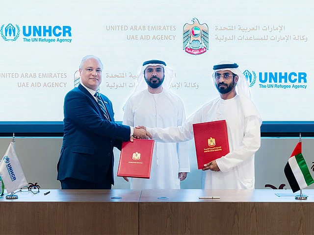 The agreement was signed by Rashid Al Shamsi, Executive Director of Logistics Support at the UAE Aid Agency, and Dr Khaled Khalifa, UNHCR Senior Advisor and Representative to the Gulf Cooperation Council countries. The signing took place in the presence of Dr Tareq Al Ameri, Chairman of the UAE Aid Agency.